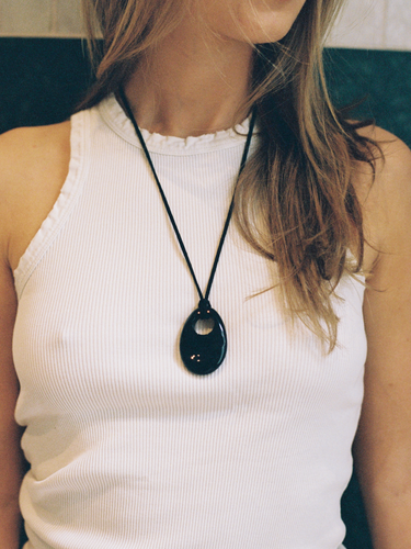 Suspended on a rope cord measuring  80cm this piece can be tied and adjusted to your liking.