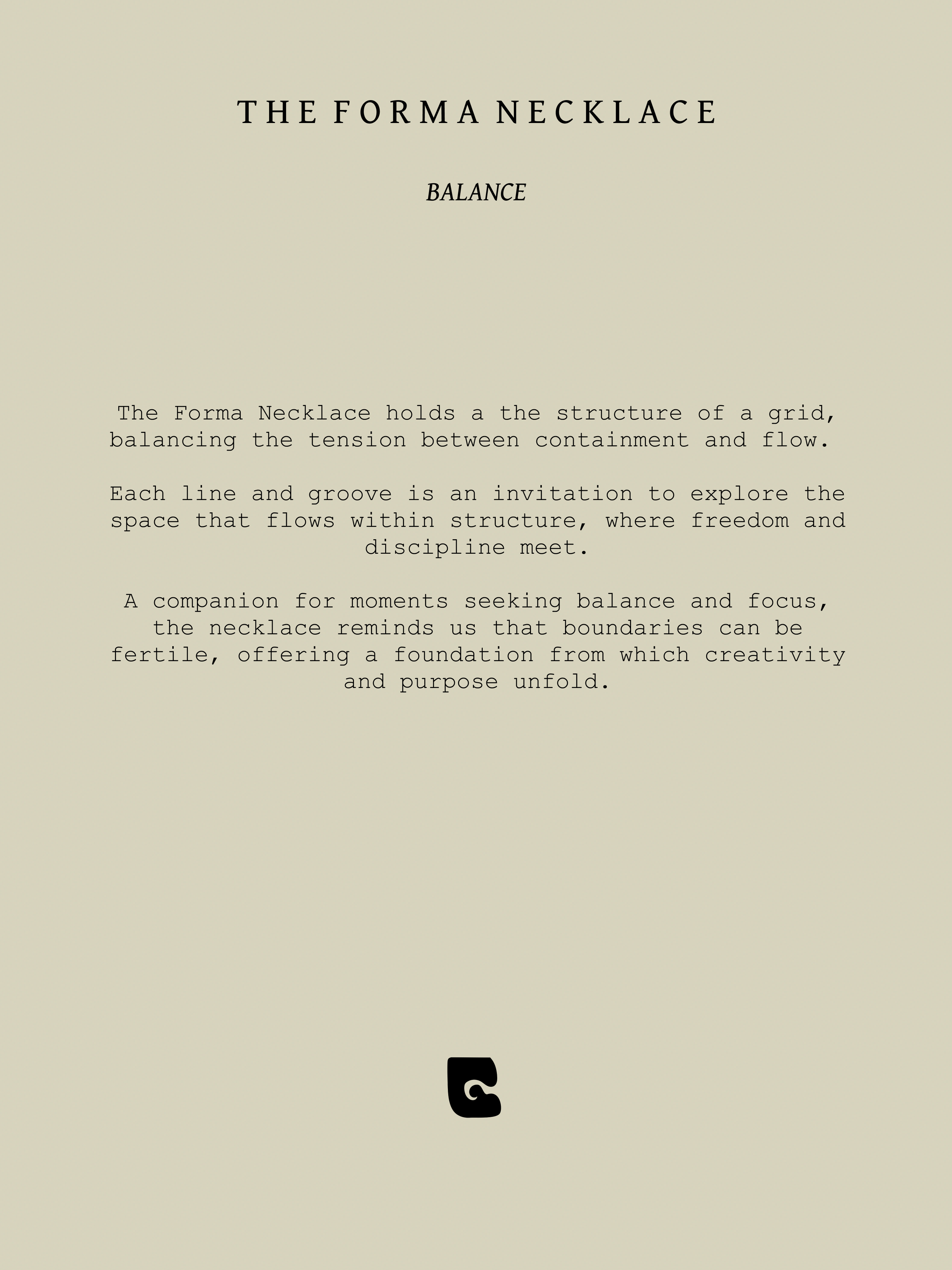 The Forma Necklace holds the structure of a grid, embodying the balance between freedom and constraint. Its grid-like pattern offers a sense of containment while holding infinite potential for movement and flow within.